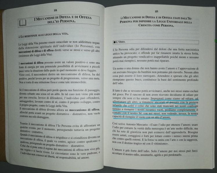“Impegnati come siamo ad odiare, ad allontanare gli altri, a rimanere ancorati al passato con la pretesa infantile che colei o colui che sono stati mancanti nei nostri confronti tornino a riempire i nostri oceanici vuoti, perdiamo completamente il contatto con il nostro Sé, con noi stessi non vedendo, invece, la nostra capacità di riempire il vuoto con un atto d’amore.”