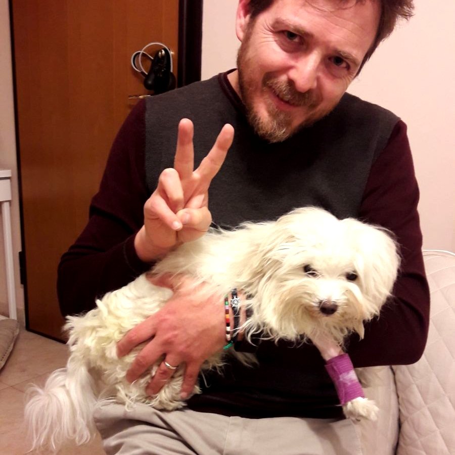 h 19:45. Ciai sono tornato a casa e sono molto felice, me la sono vista brutta e grazie a tutti per gli incoraggiamenti. Mi fa male un po’ la zampa ma è normale perché sono ancora infasciato perche mi hanno fatto un sacco di punture. Devo mangiare poco e spesso perché io mio stomaci si deve gradualmente riprendere. Prenderò antibiotici per un po’ ma ora é per me tempo di vivere e voglio vivere tanto. Bauuuu a tuttiiii ( vedere mia terza foto)